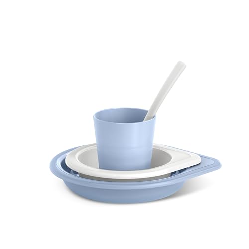 Chicco Coffret Repas Composé de Tasse Training Cup, Première Cuillère, Plat Hot Brew, Âge 6 mois +, 0% BPA, Bleu clair