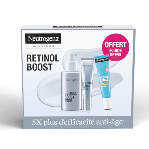 Neutrogena Coffret Cadeau Anti-Âge & Hydratation – Set beauté avec Crème Retinol Boost + Soin Contour des Yeux + Fluide Hydratant SPF 50 – Skincare routine pour réduire les rides, hydrater intensément