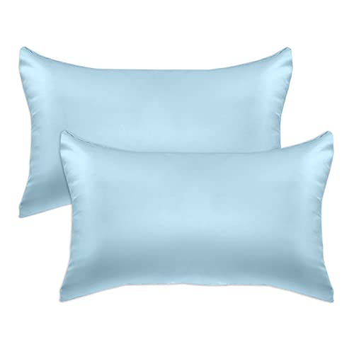 Elegant Comfort Lot de 2 taies d'oreiller en satin de viscose rafraîchissante avec fermeture éclair dissimulée, lisse et soyeuse pour un meilleur soin des cheveux et de la peau, coffret cadeau, lot de