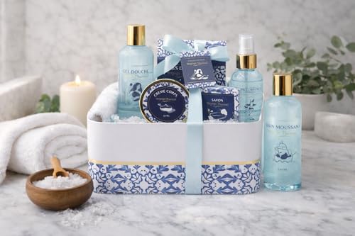 French Tendance - Coffret Bain Voyage Thermal - Gel Douche 210ml, Sels de Bain 150g, Bain Moussant 210ml - Cadeau Femme Beauté, Soin Corps - Kit Cocooning Baignoire Fraicheur
