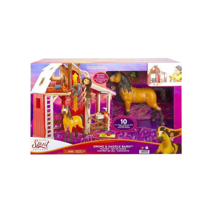 Spirit L'indomptable, coffret écurie avec figurines cheval et poulain pour rejouer les scènes du film, accessoires inclus, jouet pour enfant, GXF53