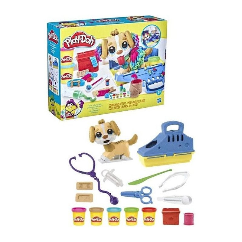 PLAY-DOH - Coffret - Le cabinet vétérinaire avec chien, mallette, 10 outils et 5