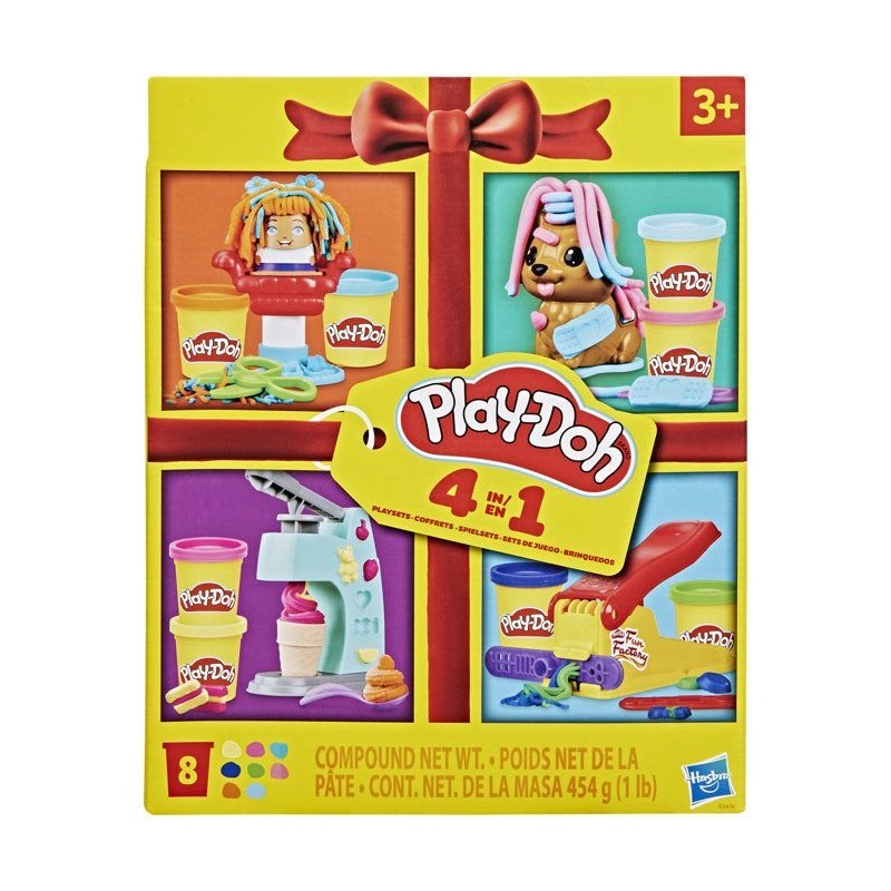 Playdoh 4 mini coffrets classiques Coffret coiffeur vétérinaire glaces et Fun factory loisirs créatifs Classique dès 3 ans