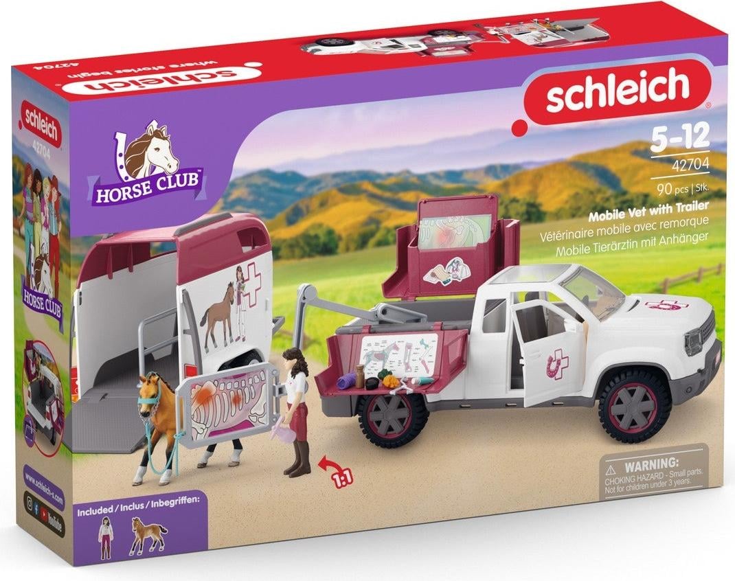 schleich Horse Club | Visite chez Le vétérinaire 72261 | Coffret avec Maison, Pick-up, remorque, 2 Figurines Mobiles, Cheval et Accessoires | Cadeau dès 5 Ans | Coffret 61 pièces