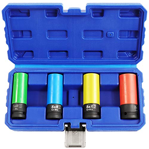 S&R Coffret 4 Douilles Ècrous (15-17-19-21 mm) Clé à Choc 1/2 au Chrome Molybdène. Coffret Embouts de serrage pour Jantes Roue voiture