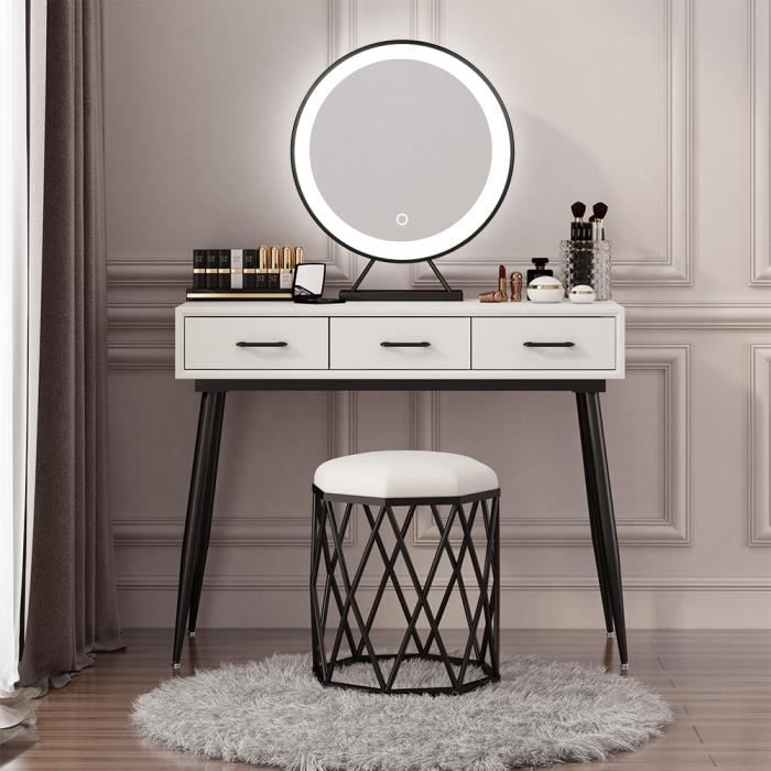 HEK Miroir Électrique Ronde De Table pour Maquillage Miroir à Poser pour Coiffeuse, 3 Modes de Lumières pour Cosmétique et Usage
