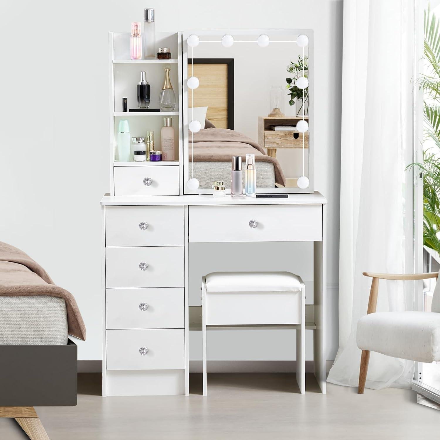 Coiffeuse avec led et tabouret