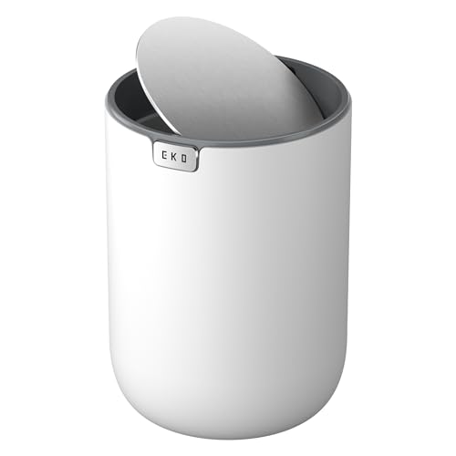 EKO Fandy Mini poubelle de bureau de 2,2 l avec couvercle basculant pour salle de bain, comptoir, coiffeuse, bureau ou bureau, petite poubelle (blanc)