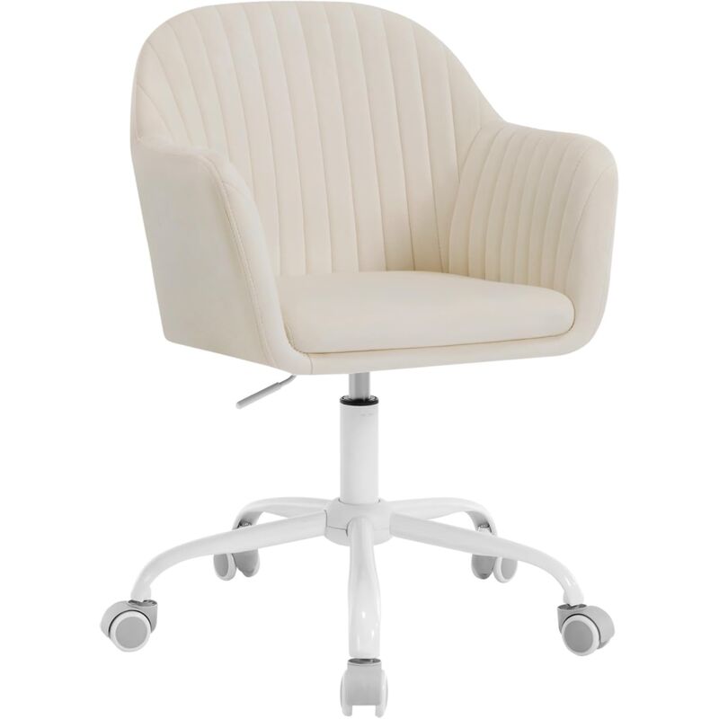 Woltu - Chaise Bureau en Velours + Métal, Chaise Coiffeuse, Fauteuil Coquillage, Chaise de Bureau, Hauteur Réglable, Crème Blanc