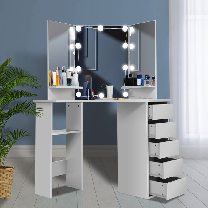 AccueilBeauté & SantéMaquillagePinceaux & AccessoiresOutils cosmétiquesCoiffeuse d'angle avec miroir led