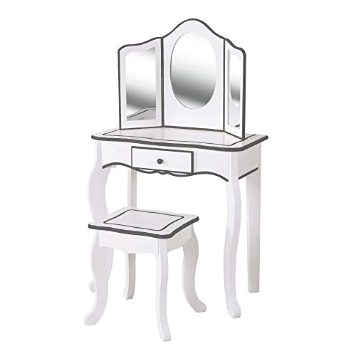 WOOMAX Coiffeuse pour Fille Blanche et Grise avec Tabouret et Miroir, Jouets en Bois, Maquillage pour Filles, 85389