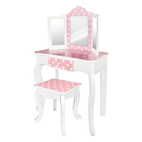 Fantasy Fields Coiffeuse Enfant Tabouret Miroir Rose avec Miroir Fille Teamson TD-12951A