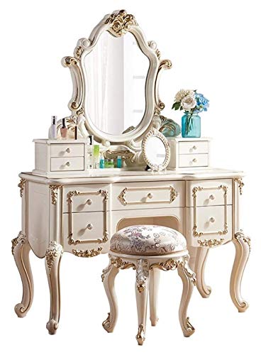 Coiffeuse de luxe de style européen en bois massif pour chambre à coucher, design princesse élégant, coiffeuse compacte, meuble de chambre chic