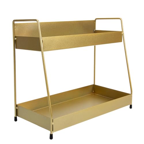 OHPHCALL Plateau de Toilette en Fer Doré Élégant pour Organiser Bijoux et Boucles D'oreilles, Gain de Place pour Coiffeuse et Meuble de Salle de Bain