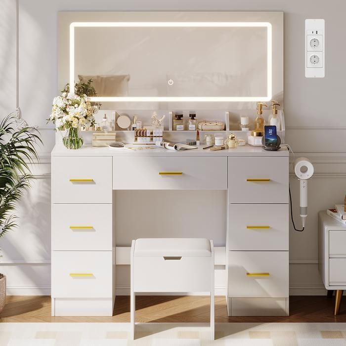 Coiffeuse miroir led et tabouret