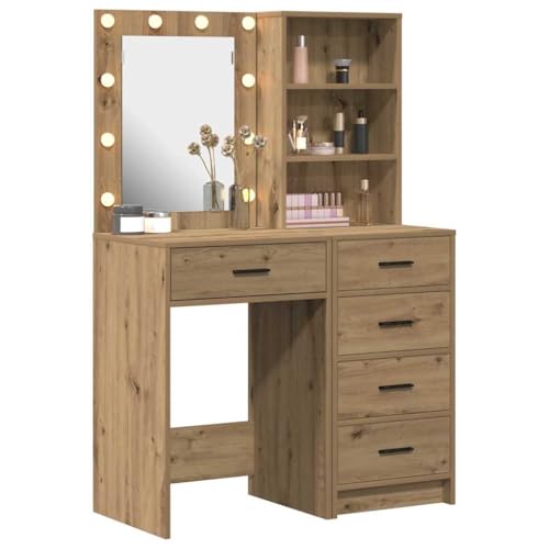 vidaXL Coiffeuse Moderne avec Miroir et Tiroirs Chêne Artisan Lampes Spot LED Vanity Compact pour Maquillage Soin dans la Chambre Étagères Ensemble Chic Mobilier Rangement