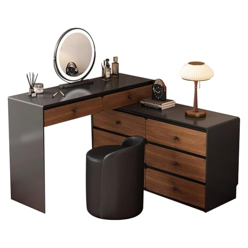 XZZXQNB Coiffeuse Moderne en Forme de L avec Miroir, éclairage LED Intelligent à 3 Tons et Meuble de Rangement modulable à 6 tiroirs pour Chambre