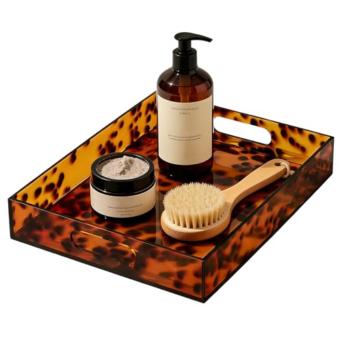 Grand plateau de coiffeuse moderne en écaille de tortue avec poignée, plateau de rangement pour salle de bain, support de parfum pour maquillage, parfum, bougies, articles de toilette | Table basse