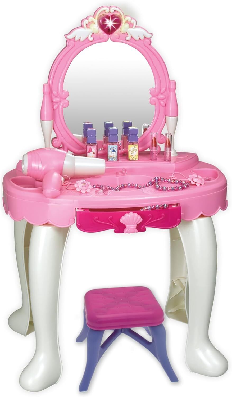 Coiffeuse avec tabouret pour enfants - Coiffeuse princesse - Baguette magique avec capteur - Accessoires inclus - 47x27x68cm