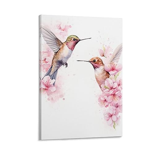 HMXQLW Colibri Toile Peinture Fleurs de Cerisier Affiche Decoration Murale Tableau Art, Impression sur Toile Salon Chambre Maison Maternelle Decor Murale Aesthetic Art sans Cadre (2X30X40CM)