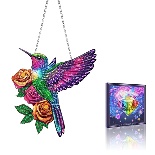 VAIIEYO 5D DIY Diamant Painting Pendentif Colibri, Animaux Peinture Diamant Hanging Kit, pour Porte et Fenêtre, Salon Chambre Autocollant Mural Décoration 20x20cm