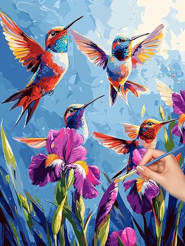 Colibri Peinture Numero Adulte, DIY Animal Peinture Numero Adulte 30x40cm, Pinceaux et Acryliques, Kits de Coloriage par Numbers pour Adultes Débutants, Décoration Murale, Cadeaux, (Sans Cadre), -6881