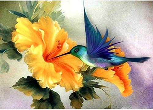 YEESAM ART Peinture Numero Colibri Fleur jaune, Bricolage Peinture par Numero 40x50 cm Acrylique Decoration Murale