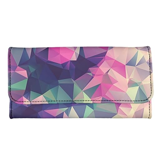 Garronmavis Portefeuille dinosaure coloré pour femme à pois, lune, étoiles, pochette en cuir synthétique, motif fleur, colibri, durable, Peinture sur vitrail géométrique bohème, Décontracté