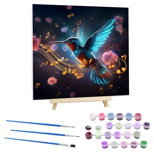 EOBROMD Peinture par Numéros pour Adulte Colibri, DIY Note Peinture Acrylique pour Adultes Débutants avec Cadre en Bois et Chevalet, Fantaisie Motifs Sans Plis Toile 30x30cm