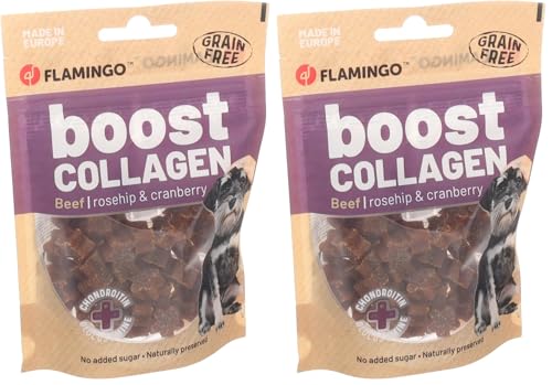 FLAMINGO Friandises pour Chien Boost Étoiles au bœuf & collagène – 60 g – sans céréales – sans sucres – avec glucosamine & chondroïtine – Fabriqué en Europe (Lot de 2)