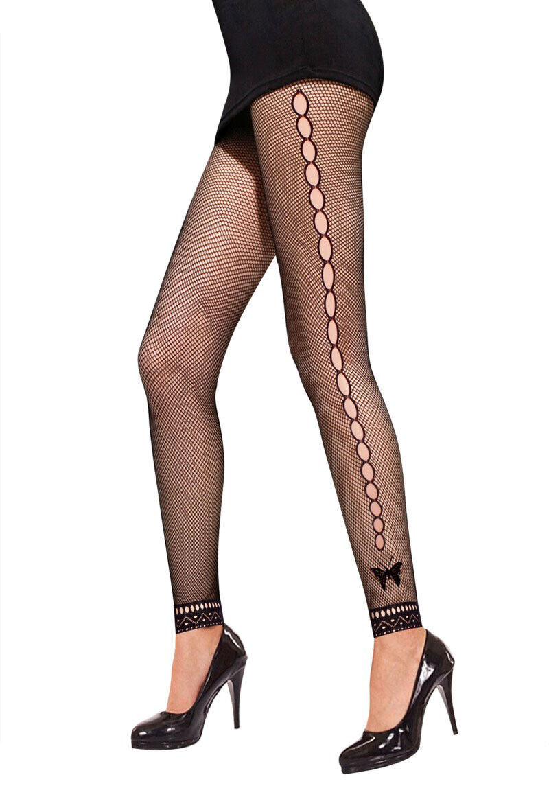 Collant Resille Motif Ligne Ouvert Papillon Noir Pied Nu SEXY BAS NEUF