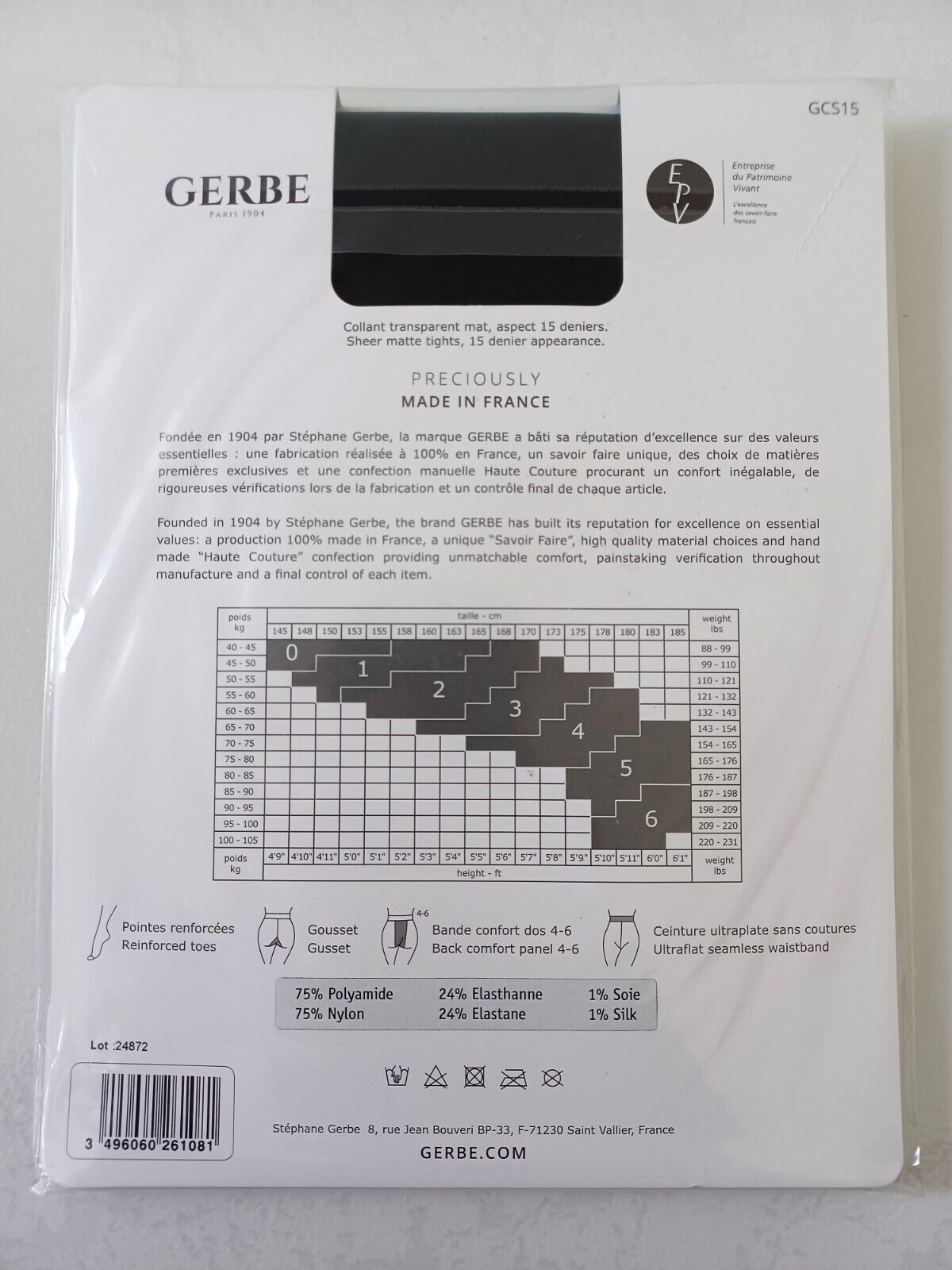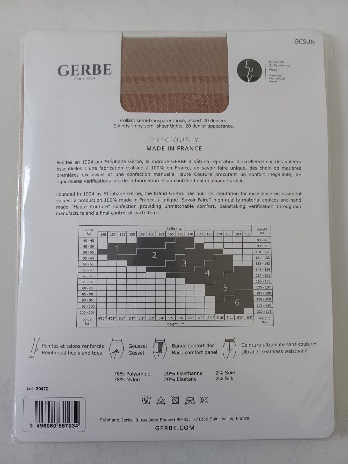 GERBE COLLANT SUN SATIN 15 DEN TAILLE 5 COULEUR OPALINE REF GCS15