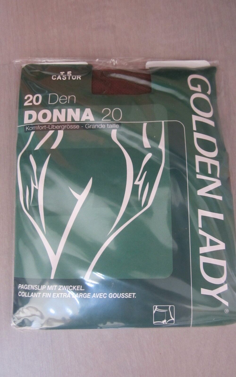 COLLANT GRANDE TAILLE GOLDEN LADY T 5 DONNA 20 NOIR NYLON 66 VOILE GOUSSET