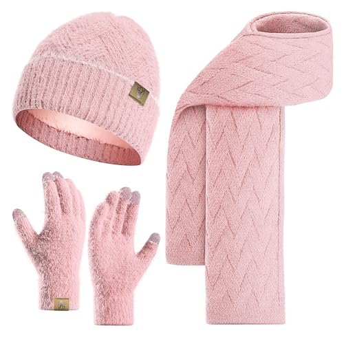 INSISMY Packs Bonnet Écharpe et Gants pour Femme Gants à Écran Tactile Thermique Tricoté Echarpe Chaude et Bonnet Polaire pour Femme