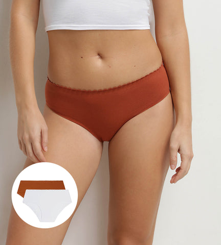 DIM Lot de 2 slips femme coton stretch Blanc Brun Body Touch