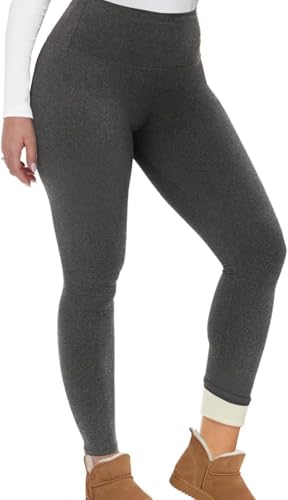 Polaire Doublé Leggings Femmes, Femmes Chaud Hiver Collants Taille Haute Contrôle du Ventre Pantalon De Yoga, Dark Gray, XL