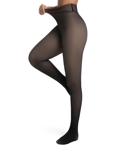 HOWIN Collant Thermique Femme, Collants Polaire Femme Hiver, Noir Legging Effet Transparent