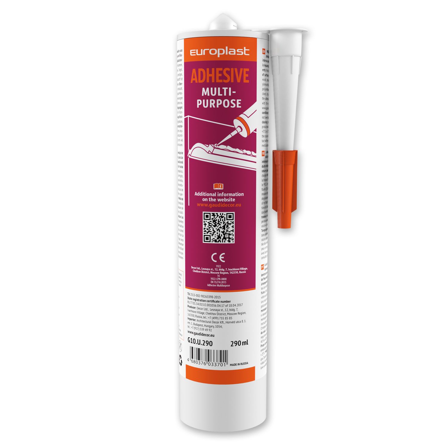 Colle d'installation pour moulures Profhome G10U290 colle extra forte à base de polymère MS pour pose à l’ intérieur et extérieur pièces humides blanc 290 ml