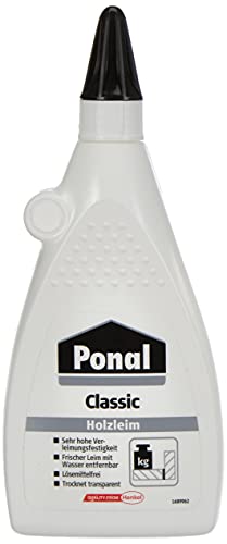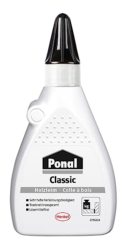 Ponal Classic Holzleim, colle à bois prête à l'emploi avec une grande résistance au collage pour les collages de montage, de surfaces et de joints, flacon de 225 g de colle de bricolage transparente.