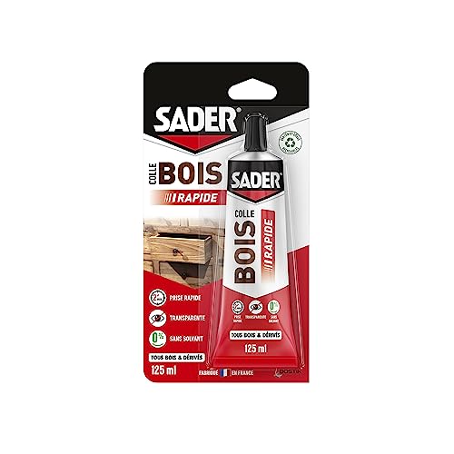 Sader Colle à Bois Prise Rapide 2 min – Colle Forte pour Tous Bois et Dérivés – Intérieur – Transparente après Séchage - Sans Solvant – Tube de 125 ml