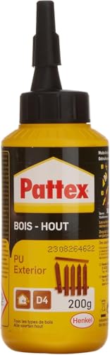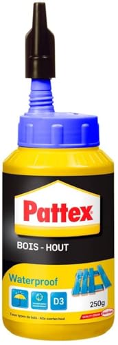 Pattex Bois Hout Waterproof, Biberon de colle à bois résistante, Colle vinylique pour montage, assemblage, placage ou contrecollage en milieu humide et chaud, 250 g