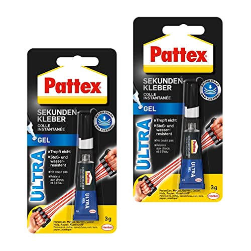 Pattex Colle instantanée Ultra Gel, 2x 3 g Super Colle Extra Forte & Flexible, Résistante aux Chocs & à l'Eau, Gel pour Caoutchouc, Cuir, Bois