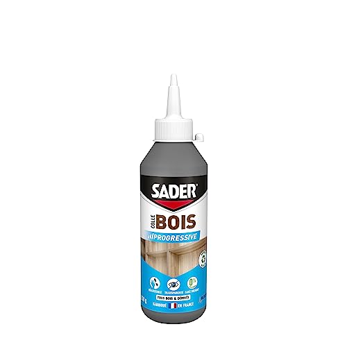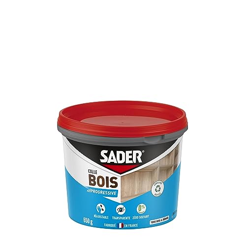 Sader Colle à Bois Prise Progressive – Colle Vinylique Bois Intérieur – Colle Forte pour Tous Bois et Dérivés –Transparente après Séchage – Sans Solvant – Pot de 650 g