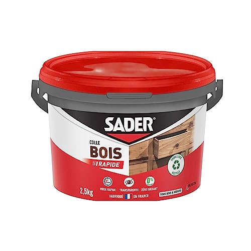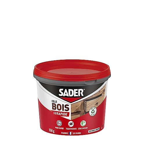 Sader Colle à Bois Prise Rapide 2 min – Colle Forte pour Tous Bois et Dérivés – Intérieur – Transparente après Séchage – Colle en Pot Applicable au Pinceau – Sans Solvant – Pot de 650 g