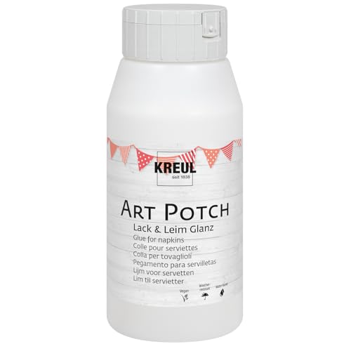 KREUL 49153 - Art Potch Vernis colle transparent et brillant 750 ml Colle à base d’eau pour la décoration et le serviettage Convient pour le bois, la céramique, la pierre et le carton