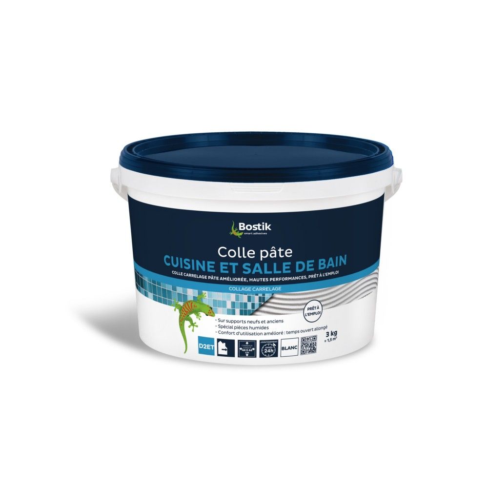 Colle à carrelage en pâte pour cuisine et salle de bain D2ET Bostik 3 kg