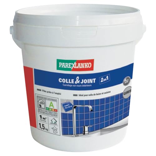 Parexlanko - Colle carrelage et joint en pâte - Colle & Joint 2 en 1 - Gris - Pour mur intérieur - Spécial pièces humides - Prête à l’emploi - 1,5kg