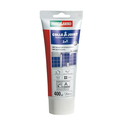 Parexlanko - Colle carrelage et joint en pâte - Colle & Joint 2 en 1 - Blanc - Pour mur intérieur - Spécial pièces humides - Prête à l’emploi - 400g