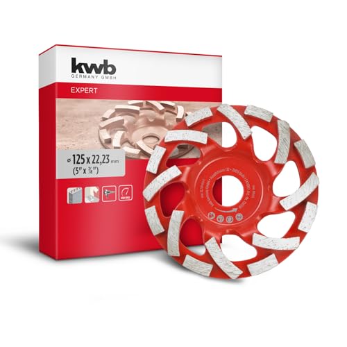kwb Meule boisseau diamantée, plateau de ponçage diamanté (avec bord à 2 rangées, Ø 125 mm, pour meuleuse d'angle, idéal pour le béton avec armature, le crépi, la chape et la colle à carrelage)