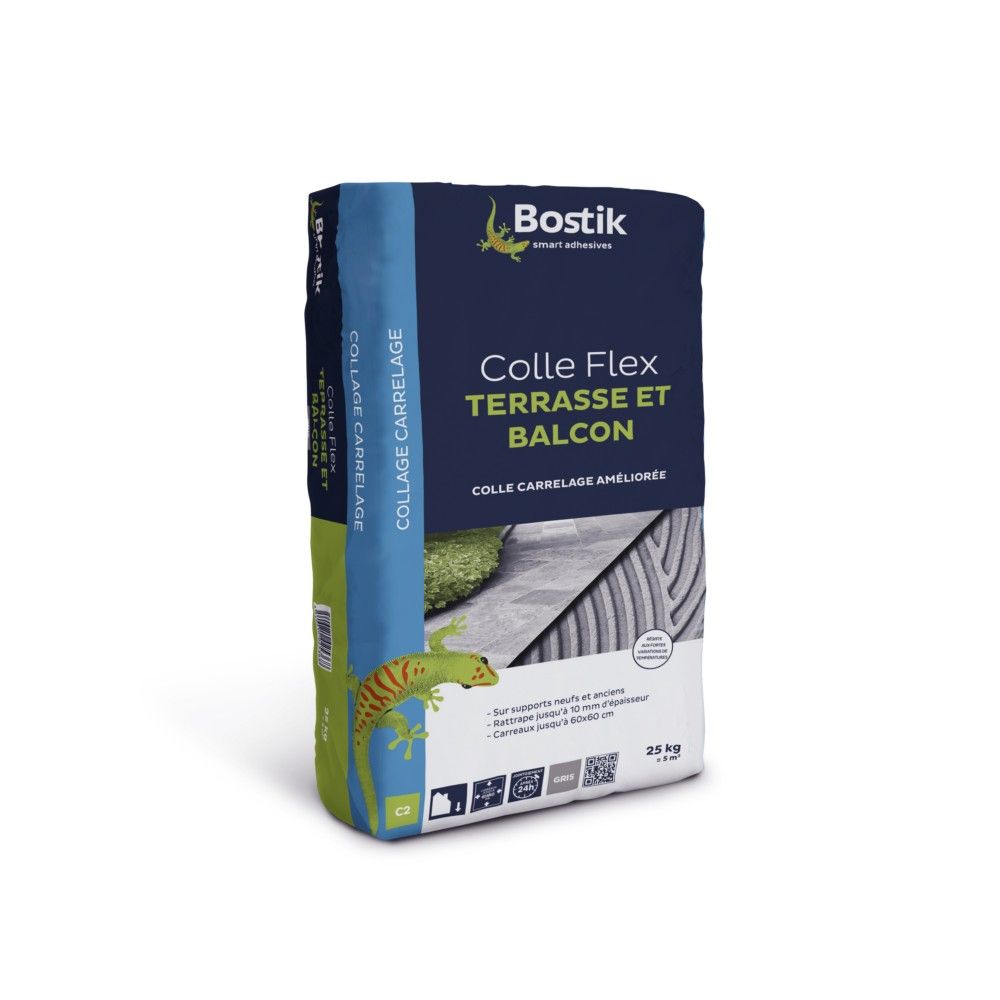 Colle à carrelage flex pour terrasse et balcon gris C2 Bostik 25 kg